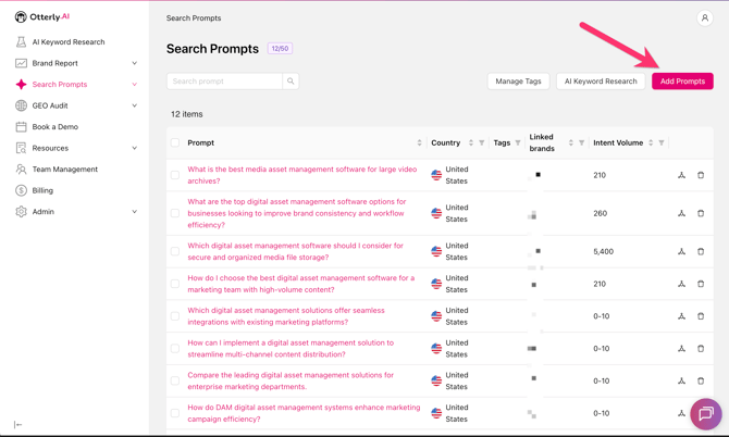 1. Go to "Search Prompts" and click on the red button "Add Prompts"