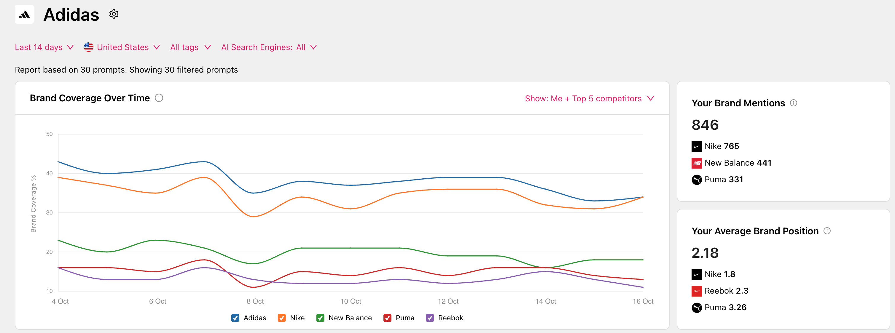 October 17, 2025 How do I compare my brand vs competitors? In the brand ranking (brand report) you can compare how many brand mentions your competitors have versus your own brand in the connected search prompts.