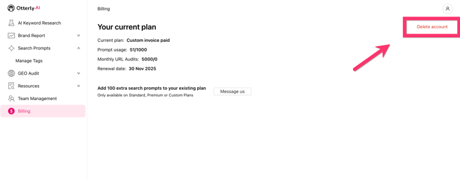 If you need to delete your account immediately, please send a request to our support team (support@otterly.ai) from the email that set up the account.